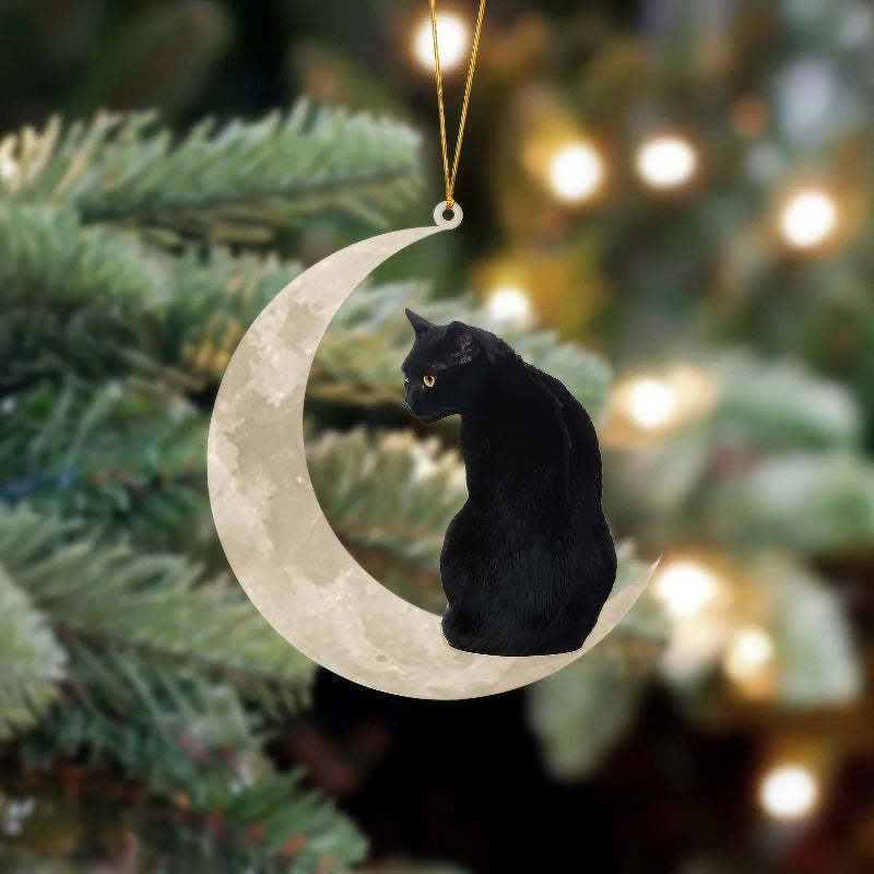 Black Cat Sits On The Moon Hanging Ornament Cs001