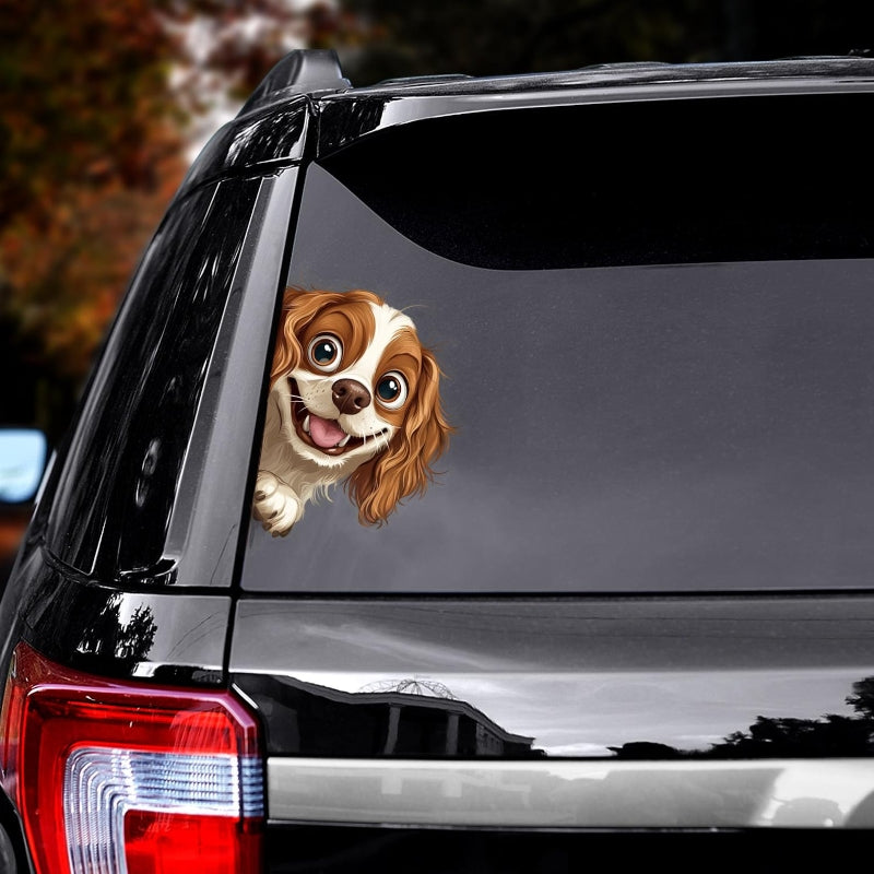 Cavalier King Charles Spaniel Dog - Peekaboo Dog Head Car Sticker - DS045