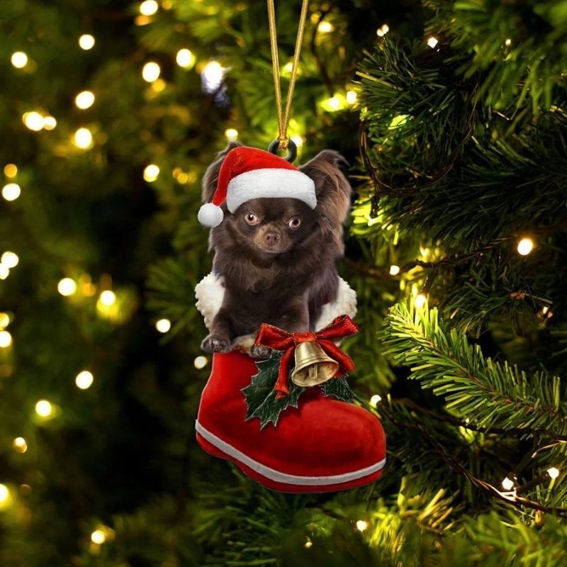 Chihuahua Chocolate In Santa Boot Christmas Hanging Ornament SB141