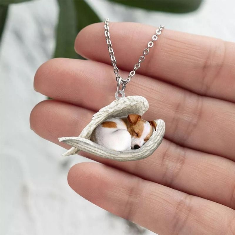 Jack Russell Terrier Sleeping Angel Stainless Steel Necklace SN003