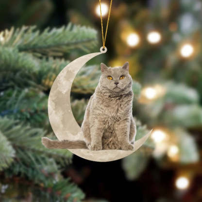 Selkirk Rex Cat Sits On The Moon Hanging Ornament Cs014